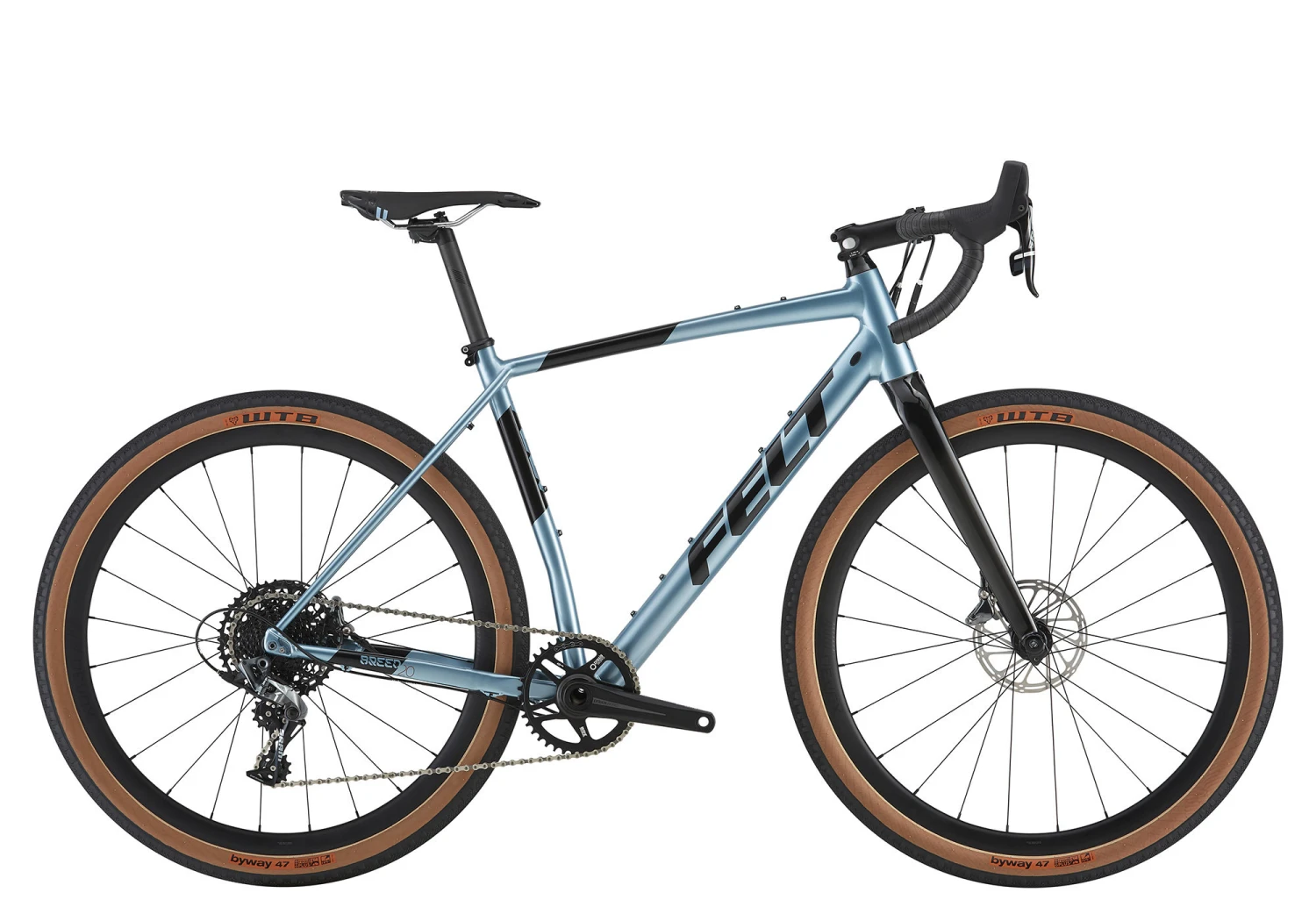 | Frame | Felt Gravel Race Disc Superlite custom butted aluminum, hydroform smooth welded construction, T47 86 bottom bracket shell, flat mount disc brake standard, replaceable rear derailleur hanger, internal mechanical cable routing |