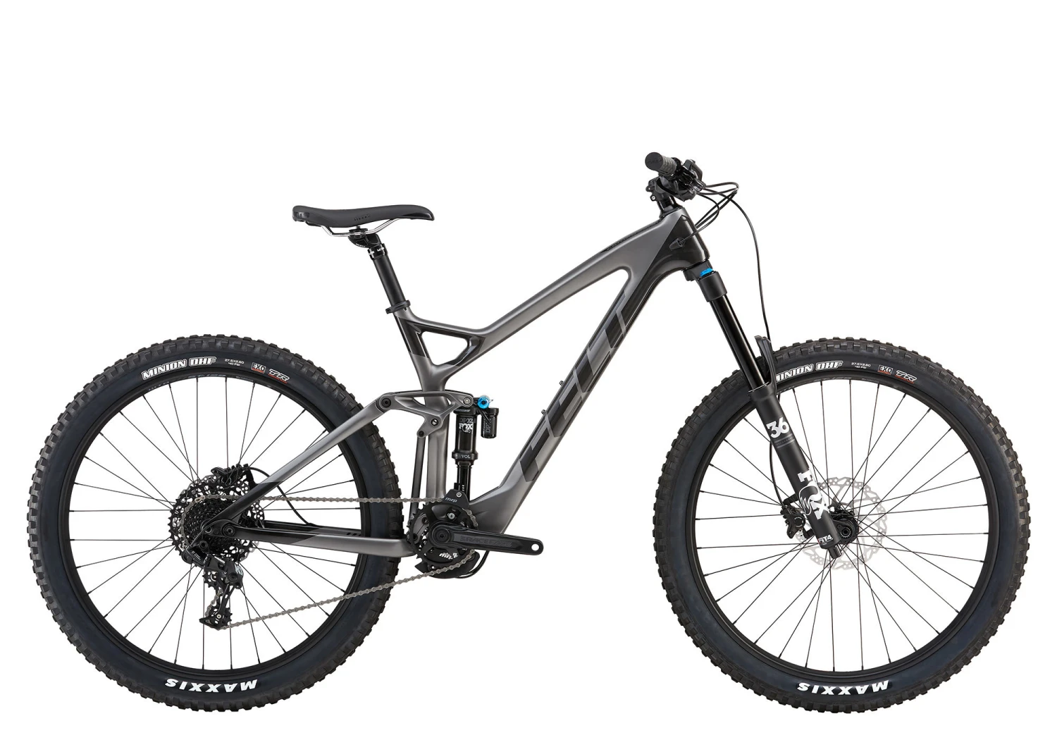 | Frame | Felt All Mountain, 165mm travel, Equilink suspension, UHC Advanced carbon fiber, MMC with InsideOut construction, full carbon dropouts, ControlTaper head tube, post disc mount, replaceable derailleur hanger, 73mm threaded BB, carbon fiber rocker links, internal derailleur cable/brake hose/dropper post routing |